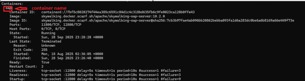 debug 명령을 실행하기 위해선 컨테이너 네임이 필요하다 .
