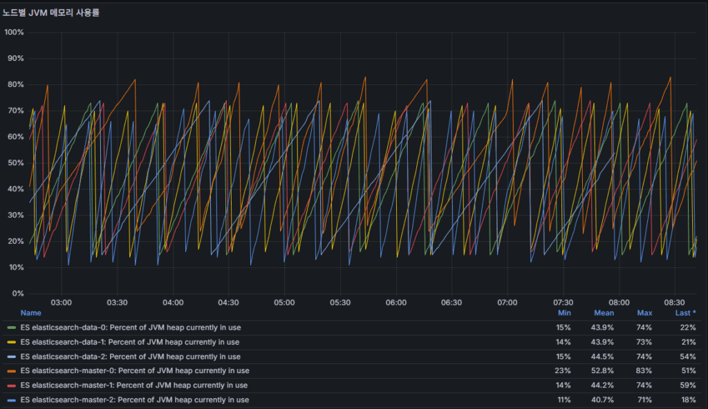 - Sustained 85%+ → Full GC frequency increases, higher risk of latency.