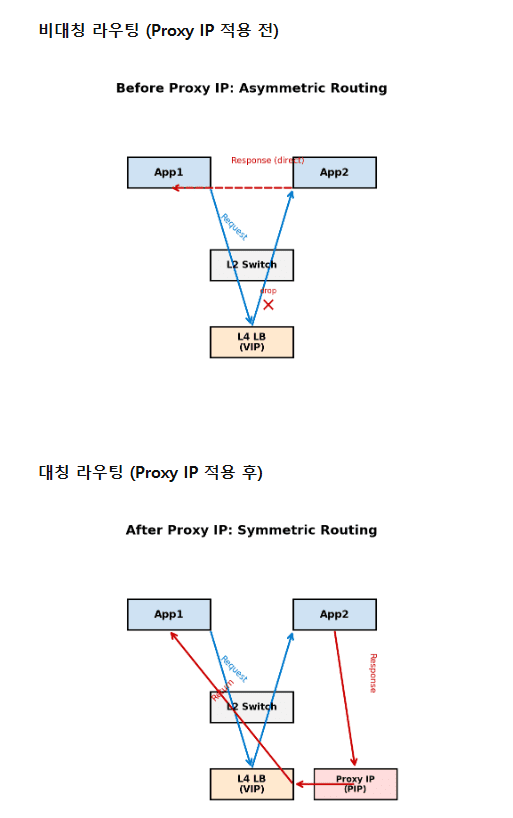 Enabling the proxy IP forces responses back through the L4, restoring symmetry and completely eliminating the issue.
