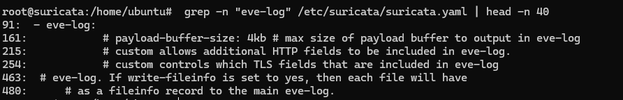 # grep -n "eve-log" /etc/suricata/suricata.yaml | head -n 40